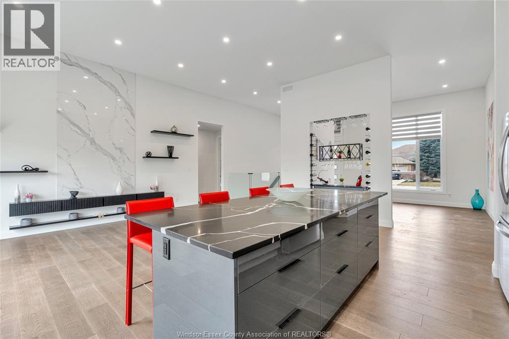 Customized modern Lakeshore ranch! This stone and brick beauty spares no expense in making it exquisite. You will be in awe as soon as you enter the foyer with the amazing space and 12 foot ceilings leading to an open bright living room with porcelain highlite wall. Magnificent kitchen with massive quartz island and loads of lovely cabinets that go right to ceiling !Unique walk-in pantry with full cabinetry. Dining room has special custom wine rack and cabinet. Abundant natural light with oversized and distinctive windows and patio doors. Large Primary bedroom with 9 ft. ceilings, California closet and fabulous 5 pc ensuite bath ,oversized ceramic walk in shower and soaker tub. Two other good size bedrooms with full bathroom and ceramic shower and soaker tub. Hardwood and ceramic flooring throughout. Landscaped front yard with oversized cement driveway enough for 7 cars. Elegant front porch with stone pillars. Don't miss this one !! (id:4555)